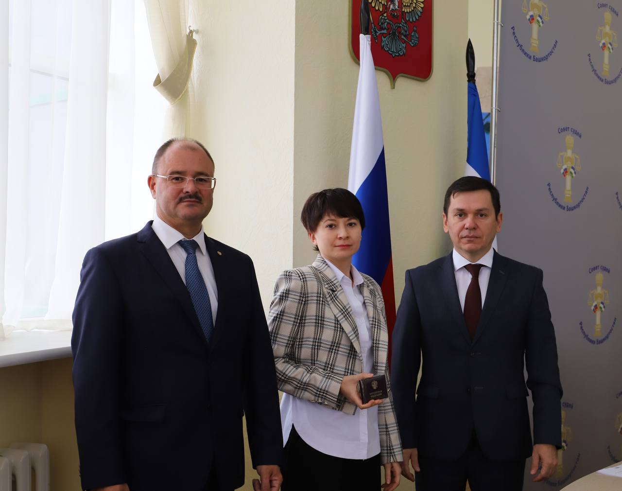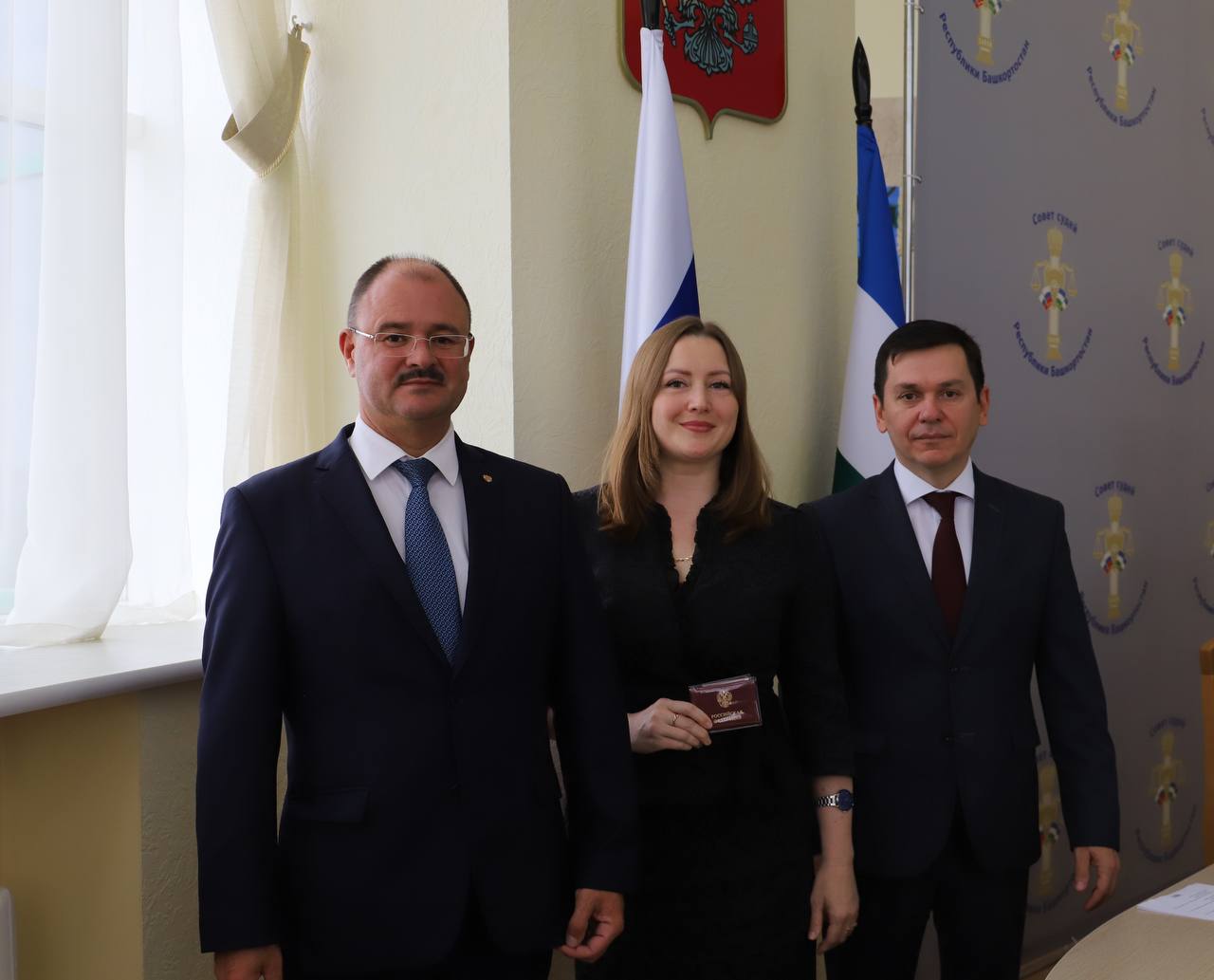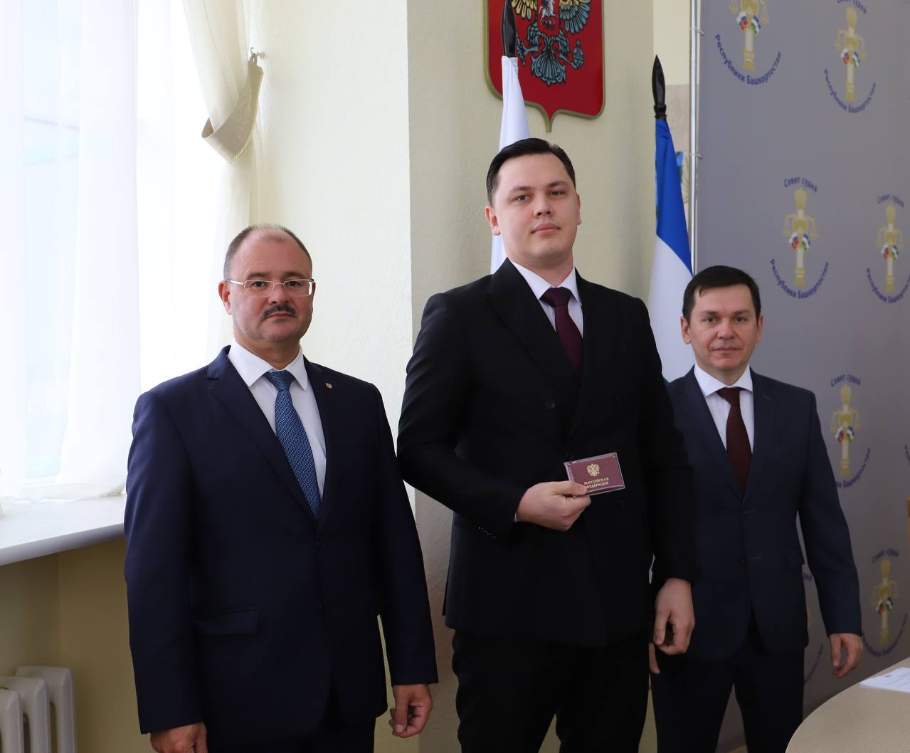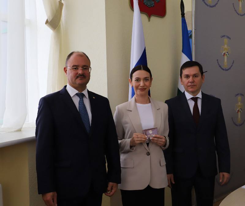 5 сентября в Верховном Суде Республики Башкортостан состоялась церемония вручения удостоверений федеральным судьям, назначенным Указом Президента Российской Федерации от 16 августа 2023 г. №565. Заместитель Председателя Верховного Суда Республики Башкортостан Азат Гизатуллин и главный федеральный инспектор по Республике Башкортостан Алексей Касьянов в торжественной обстановке вручили служебные удостоверения заместителю председателя Октябрьского районного суда г. Уфы Екатерине Елькиной, судьям Верховного Суда Республики Башкортостан Константину Везденеву, Елене Корниловой, Айгуль Курамшиной, Наргизе Сиразевой и судье Стерлибашевского межрайонного суда Республики Башкортостан Диасу Раимову. Главный федеральный инспектор по Республике Башкортостан Алексей Касьянов поздравил судей с важным событием, подчеркнув важность судейского труда в поддержании правопорядка и справедливости, указав на то, что каждому из них доверена высокая ответственность – служить закону и защищать права граждан.